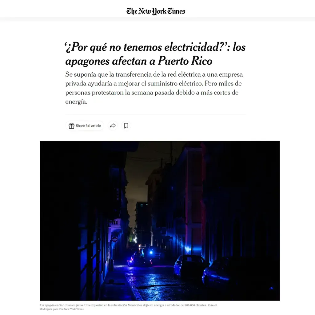 Cómo escribió en su día el New York Times, Puerto Rico tiene una estructura eléctrica precaria por culpa de: "El envejecimiento de los equipos, la falta de mantenimiento y un pasado de mala gestión y corrupción de un sistema ineficiente."